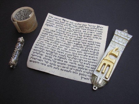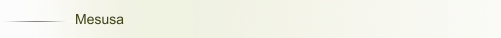 Eine Mesusa (dt. Türpfosten) ist ein längliches Behältnis (etwa Finger groß) mit einer Schriftrolle, das man am rechten Türpfosten anbringt. Sie wird auf ca. 2/3 der Türhöhe befestigt. Das Schriftröllchen enthält das jüdische Glaubensbekenntnis Schma Israel "Höre Israel, der HERR (JHWH) ist unser Gott, der HERR (JHWH) ist einzig" 5. Mose 6,4-9 und 5. Mose 11,13-21. Die Mesusa geht auf das Gebot aus 5. Mose 6,9 zurück man solle Gottes Worte "auf die Pfosten deines Hauses und an deine Tore schreiben." Die Mesusa soll das Haus schützen und ihm Segen bringen. Von gläubigen Juden wird die Mesusa beim Eintreten gegrüßt und geküßt, indem sie mit den Fingerspitzen berührt wird und die Fingerspitzen dann zum Mund geführt werden.