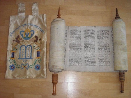 Thorarolle un Thoramantel zur Verwahrung der Thora